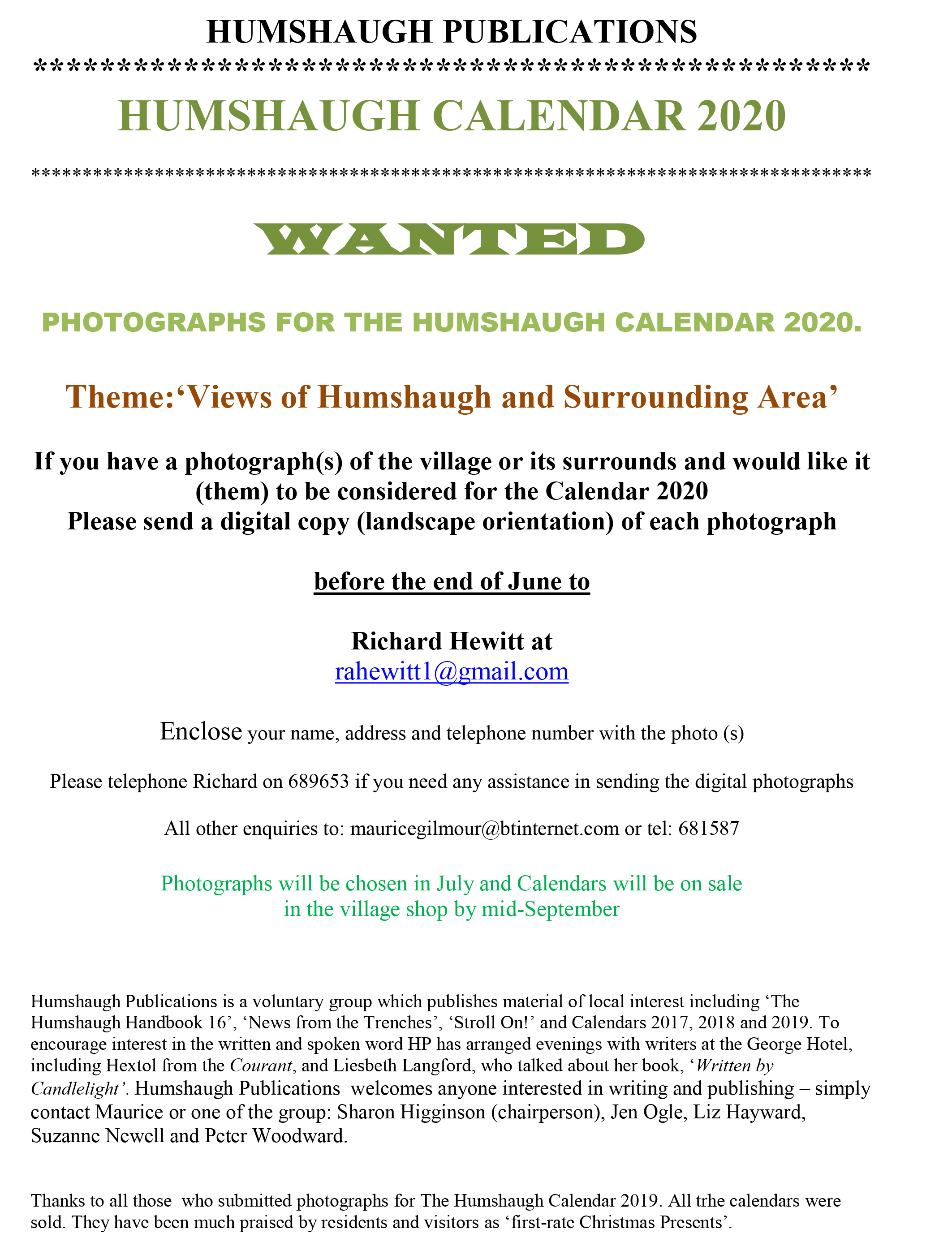 Humshaugh Village Shop will be the “hub” for providing goods and access to information on wider services. There will be a volunteer-run delivery service of food, including ready-meals, newspapers and other essentials. The Shop website (http://www.humshaughshop.co.uk/) will provide information on other services.